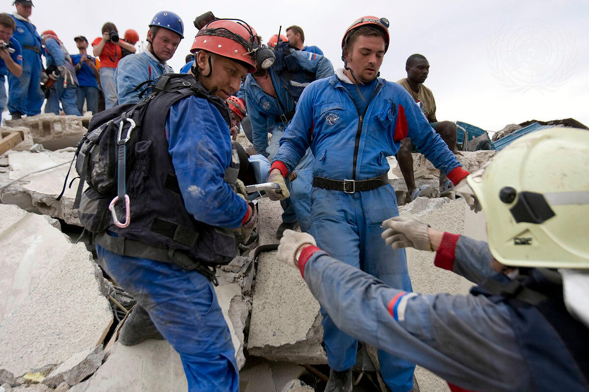 Search and Rescue Team Sifts Through UN Mission Rubble