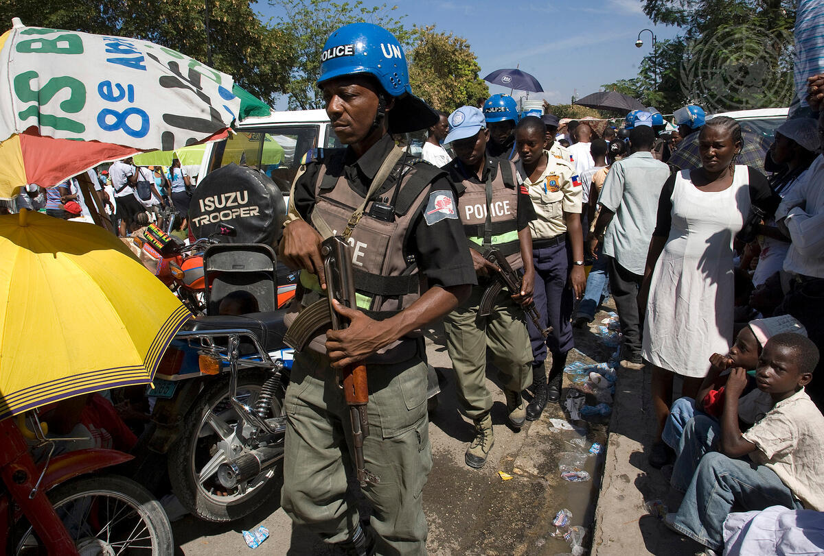 UN Peacekeepers and Haitian Police PatrolEarthquake Commemoration Gathering