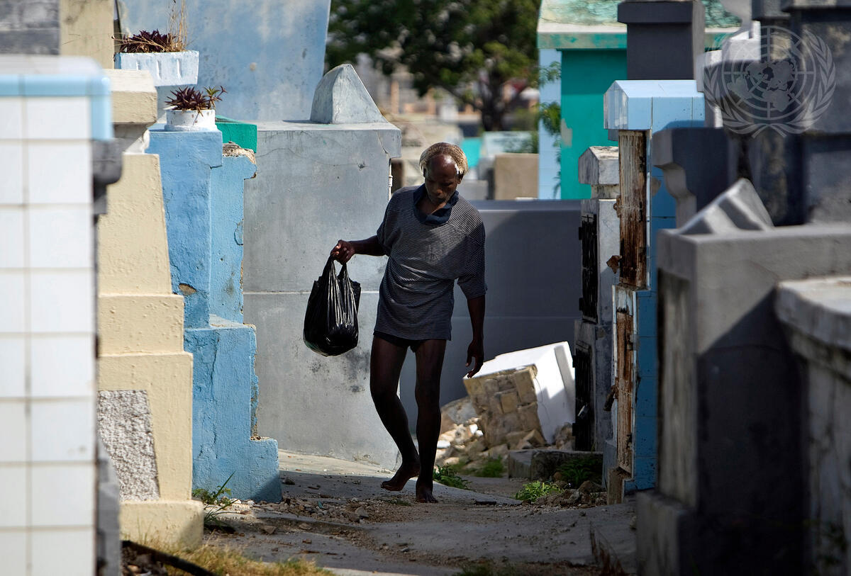 A man wanders through a cemetery in Port-au-Prince, Haiti, as the city's residents unite in mourning the thousands of dead lost to the earthquake one month ago.