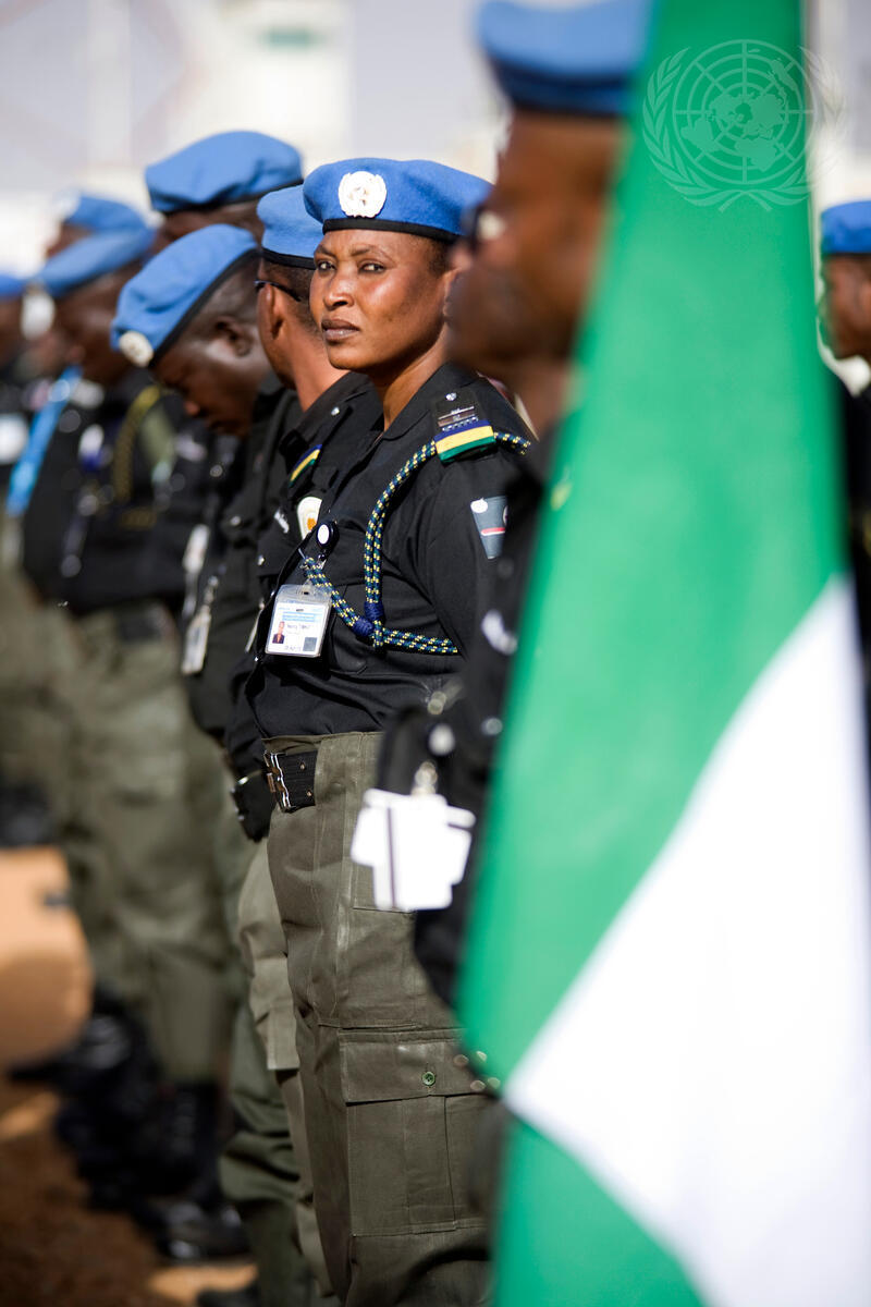 Nigerian UN peacekeepers stand in formation for their medal ceremony at the African Union-United Nations Hybrid Operation in Darfur (UNAMID)'s Super Camp in El Fasher, Sudan.