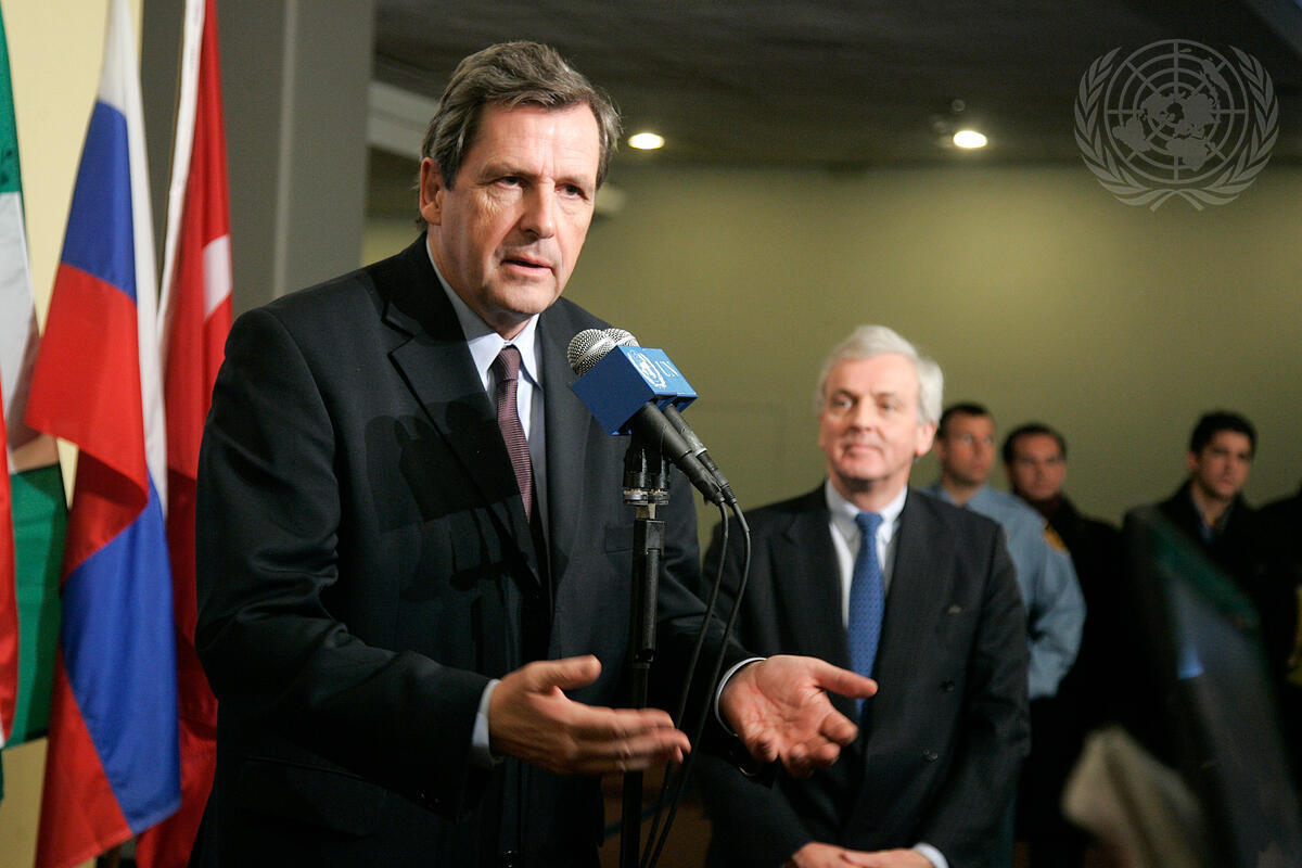 Alain Le Roy, Under-Secretary-General for Peacekeeping Operations, briefs reporters following a Security Council meeting on the situation in Haiti.