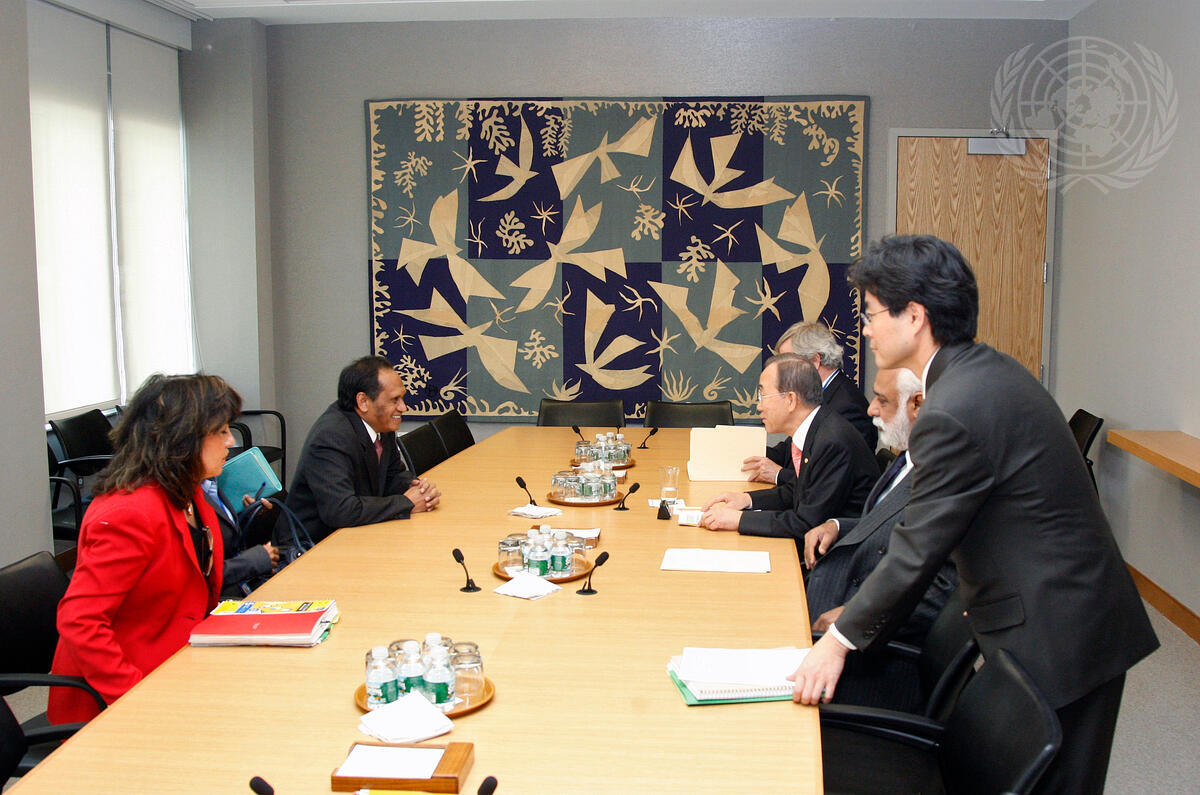Secretary-General Ban Ki-moon (third from right) meets with José Luís Guterres (across from Mr. Ban), Deputy Prime Minister of the Democratic Republic of Timor-Leste.