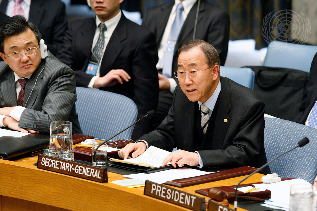 Secretary-General Ban Ki-moon addresses the Security Council's meeting on transition and exit strategies in UN peacekeeping operations.