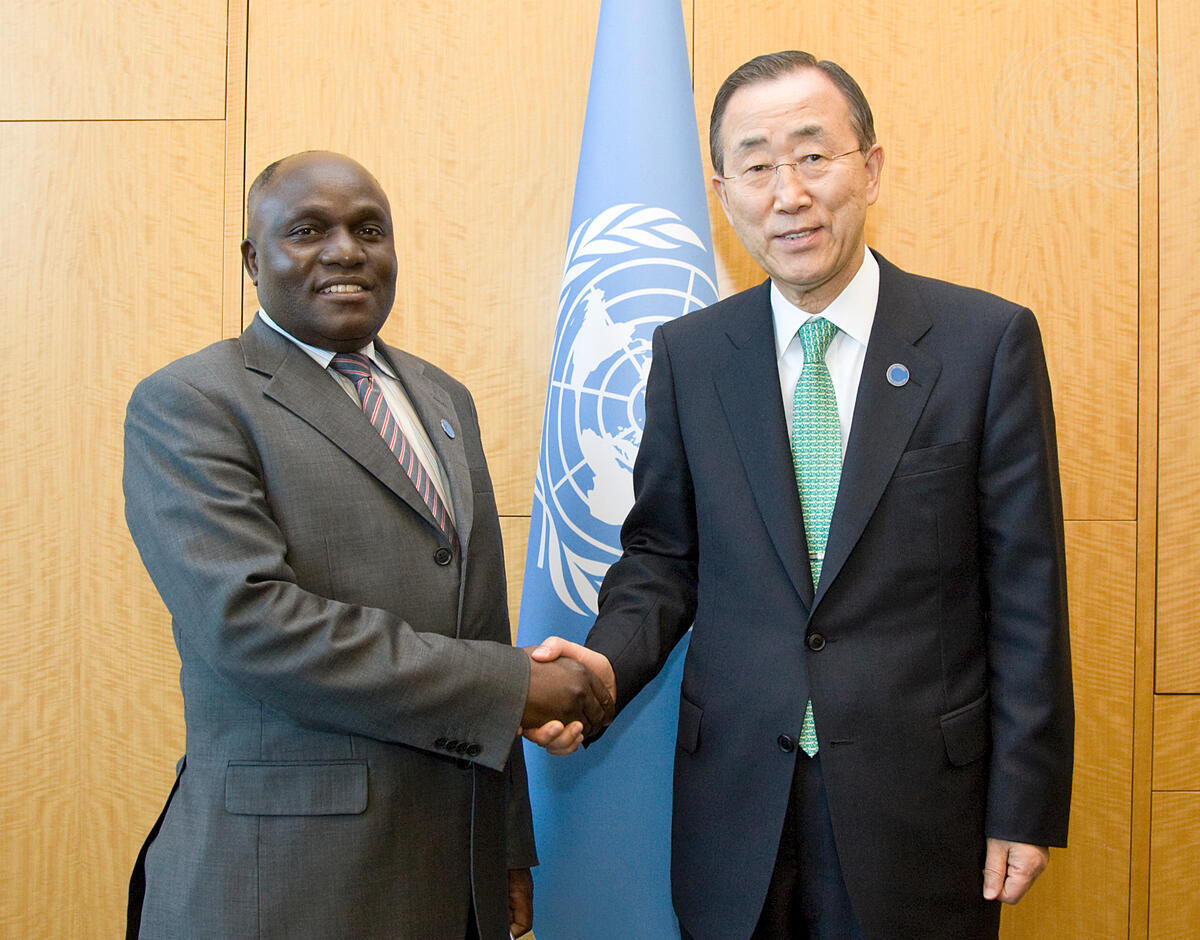 Secretary-General Ban Ki-moon (right) meets with Crispus Kiyonga, Minister of Defence of the Republic of Uganda, at the UN Istanbul Conference on Somalia in Istanbul, Turkey.