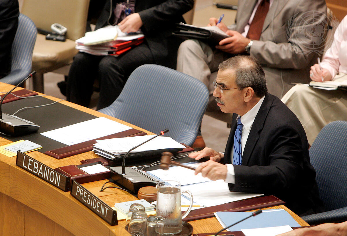 Nawaf Salam, Permanent Representative of Lebanon to the UN and President of the Security Council for May, convenes the Council's meeting on the the United Nations Mission in the Central African Republic and Chad (MINURCAT).