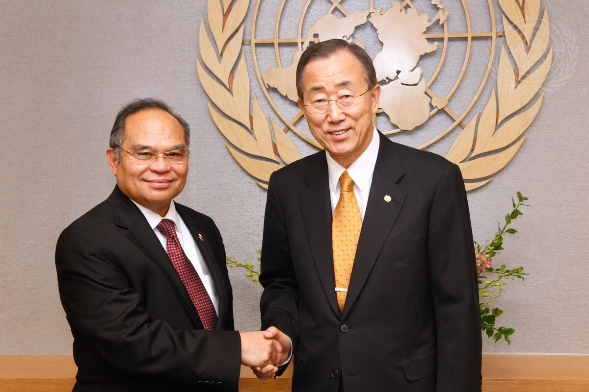 Secretary-General Ban Ki-moon (right) meets with Libran N. Cabactulan, Permanent Representative of the Republic of the Philippines to the United Nations and President of the 2010 Review Conference of the Parties to the Treaty on the Non-Proliferation of Nuclear Weapons (NPT).