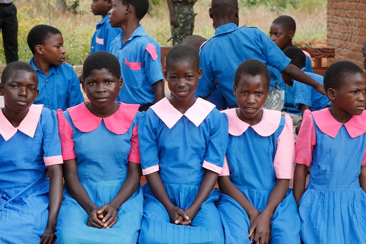 Students at Dindi Primary School in Mwandama Millennium Village, Malawi. Secretary-General Ban Ki-moon and his wife, Yoo Soon-taek, toured the school during their official visit to Malawi.