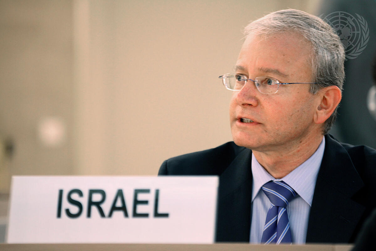 Aharon Leshno-Yaar, Permanent Representative of Israel to the UN Office at Geneva (UNOG), addresses the Human Rights Council prior to the Council's adoption of a resolution deciding to dispatch an independent, international fact finding mission into the 31 May Israeli raid on a Gaza aid flotilla. The resolution deplored the loss of life in the raid and urged a lifting of the Gaza blockade.