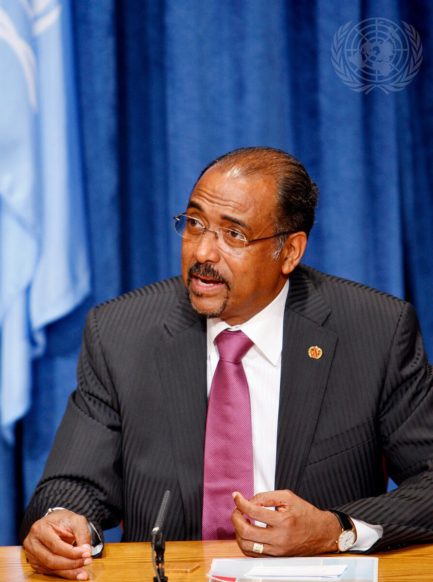 Michel Sidibé, Executive Director of UNAIDS, addresses a press conference tied to the General Assembly's yearly review of the implementation of the 2001 United Nations Declaration of Commitment on HIV/AIDS.