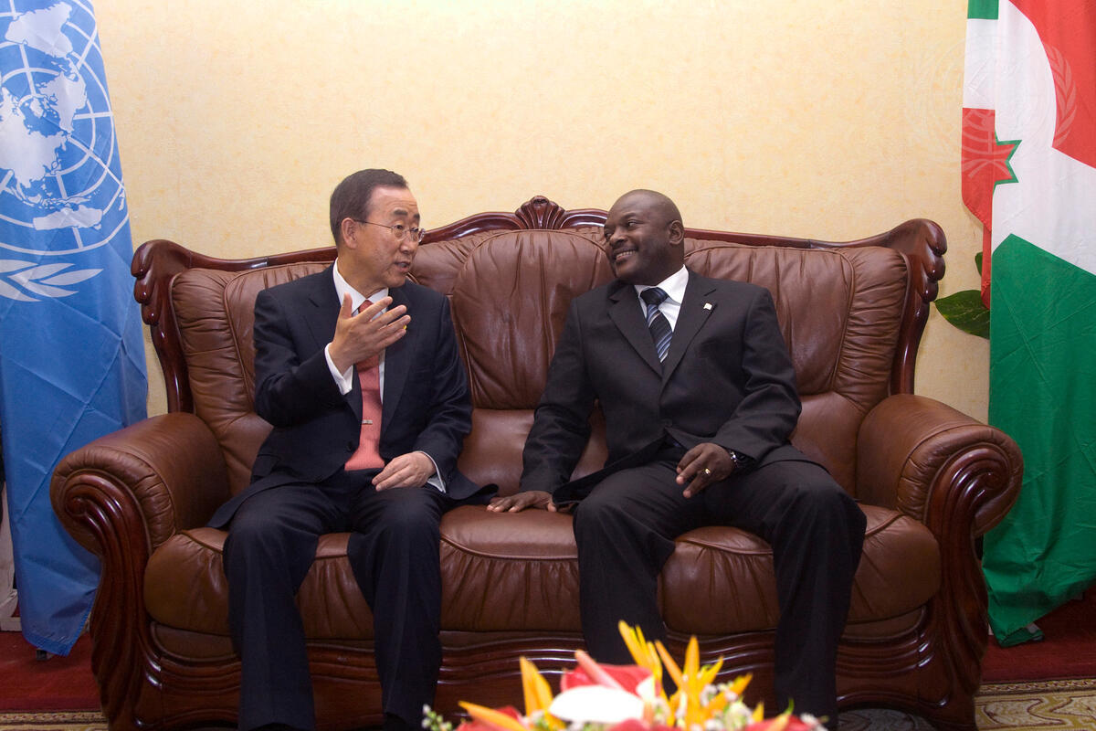 Secretary-General Ban Ki-moon (left) meets with Pierre Nkurunziza, President of the Republic of Burundi, during his official visit to Burundian capital Bujumbura.