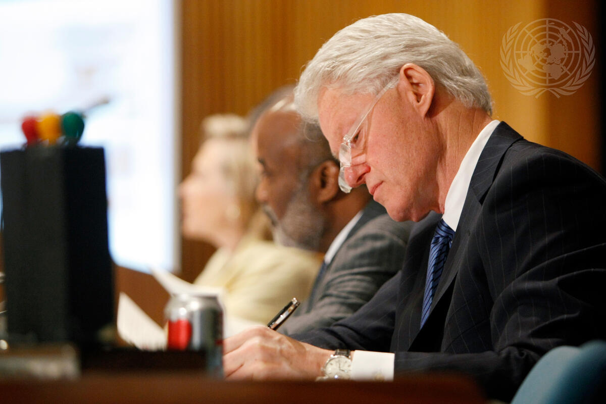 William J. Clinton (right), UN Special Envoy for Haiti and former President of the United States of America, and René Garcia Préval (centre), President of Haiti, are among the speakers addressing the ministerial ""International Donors' Conference towards a New Future for Haiti"". In the background is U.S. Secretary of State Hillary Rodham Clinton.