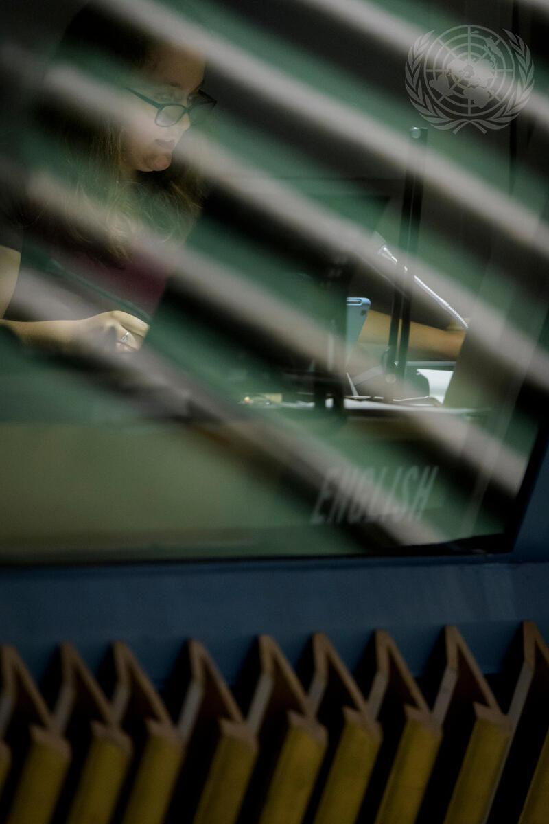 A view of the English interpretation booth during the General Assembly meeting on the responsibility to protect and the prevention of genocide, war crimes, ethnic cleansing and crimes against humanity.
