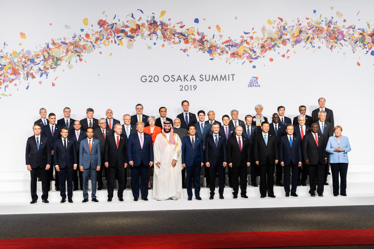 Group photo of Heads of States and others attending the G20 Summit in Osaka, Japan.