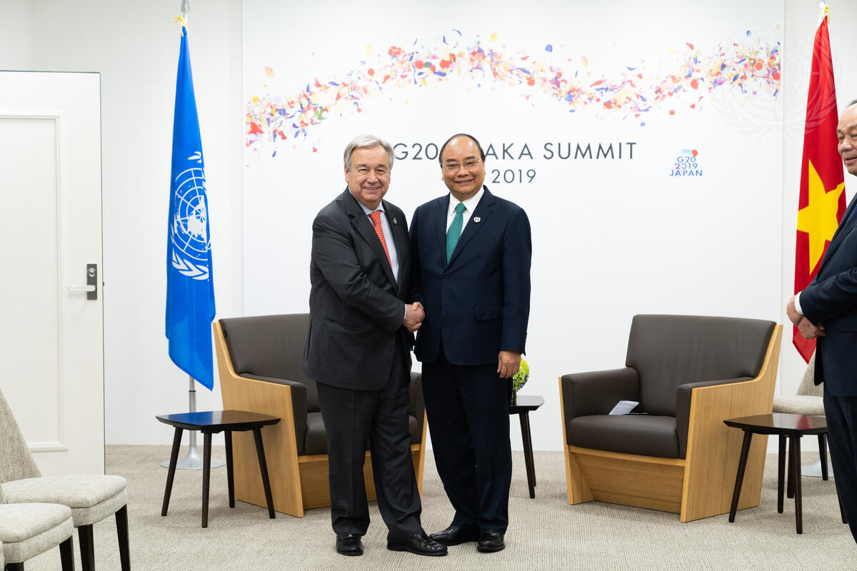 Secretary-General António Guterres (left) meets with Nguyen Xuan Phuc, Prime Minister of the Socialist Republic of Viet Nam, during the G20 Summit in Osaka, Japan.
