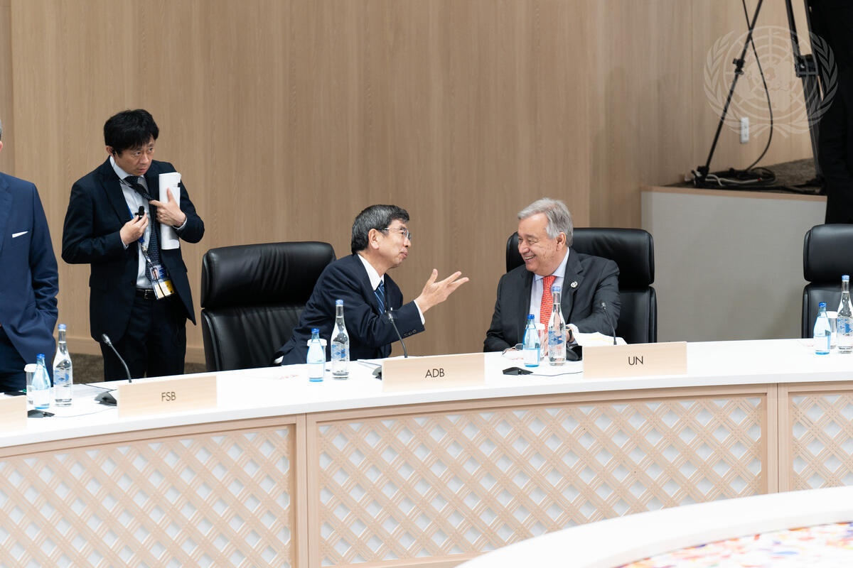 Secretary-General António Guterres (right) chats with Takehiko Nakao, President of the Asian Development Bank (ADB), before the G20 Summit’s Session III, “Addressing Inequalities, Realizing an Inclusive and Sustainable World”, in Osaka, Japan.