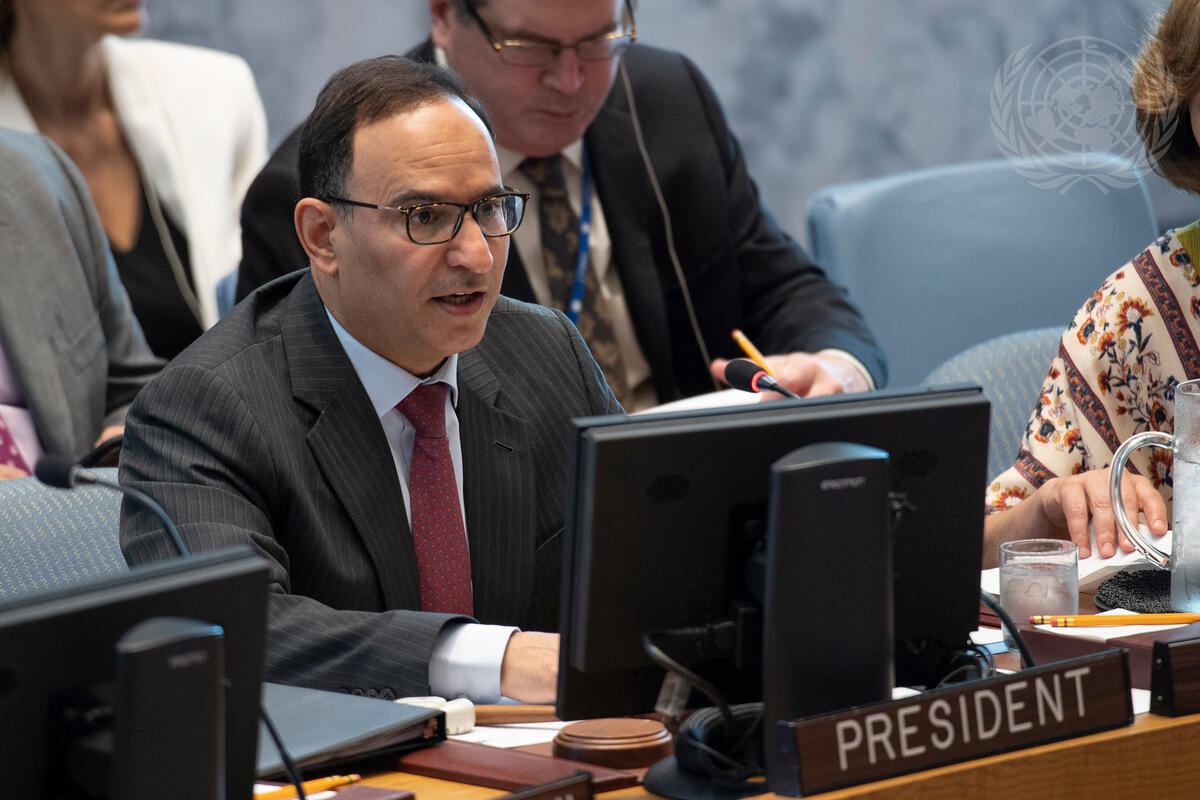 Mansour Al-Otaibi, Permanent Representative of Kuwait to the United Nations and President of the Security Council for the month of June, chairs the Security Council meeting on the situation in the Sudan and South Sudan.
