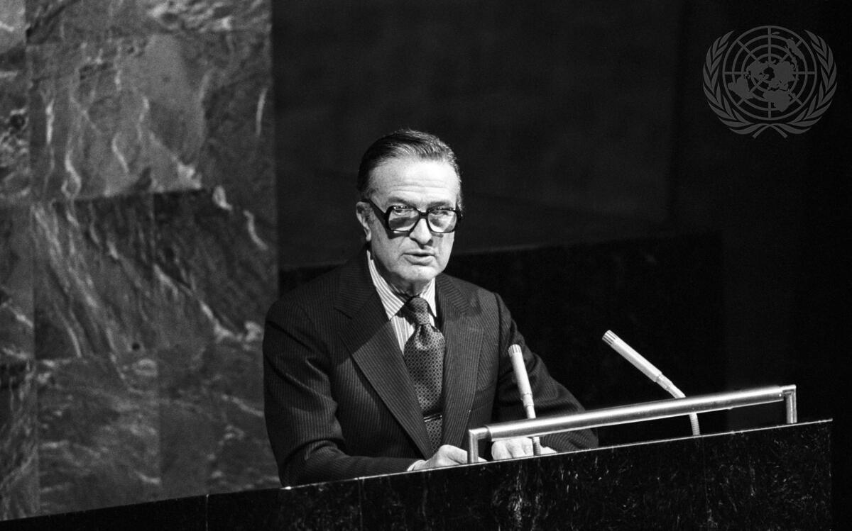 Alberto Nogues, Minister for External Relations of Paraguay, is seen addressing the Assembly.