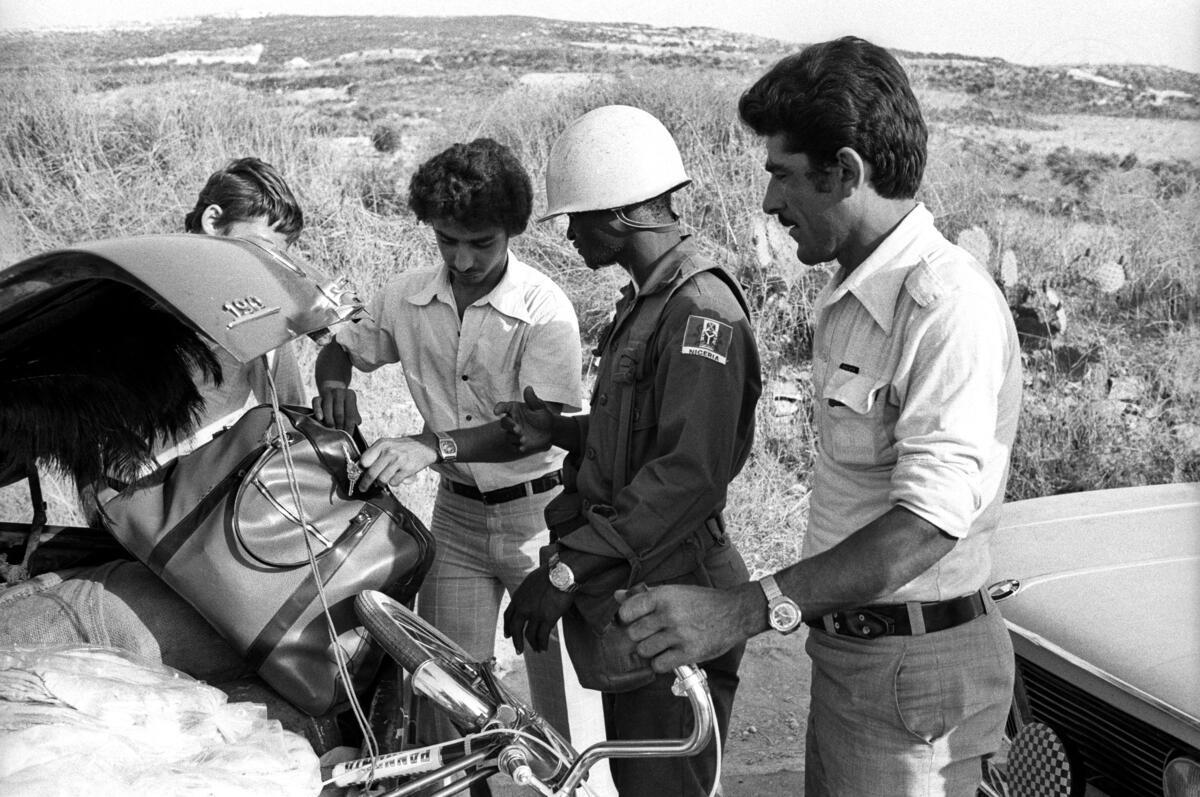 A member of the Nigerian contingent inspecting a vehicle of a Lebanese family returning to their home in southern Lebanon.