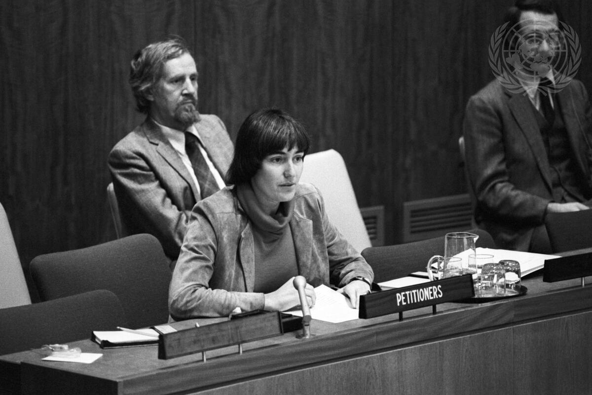 Sue Nichterlein speaking for the Minority Rights Group as a petitioner on East Timor