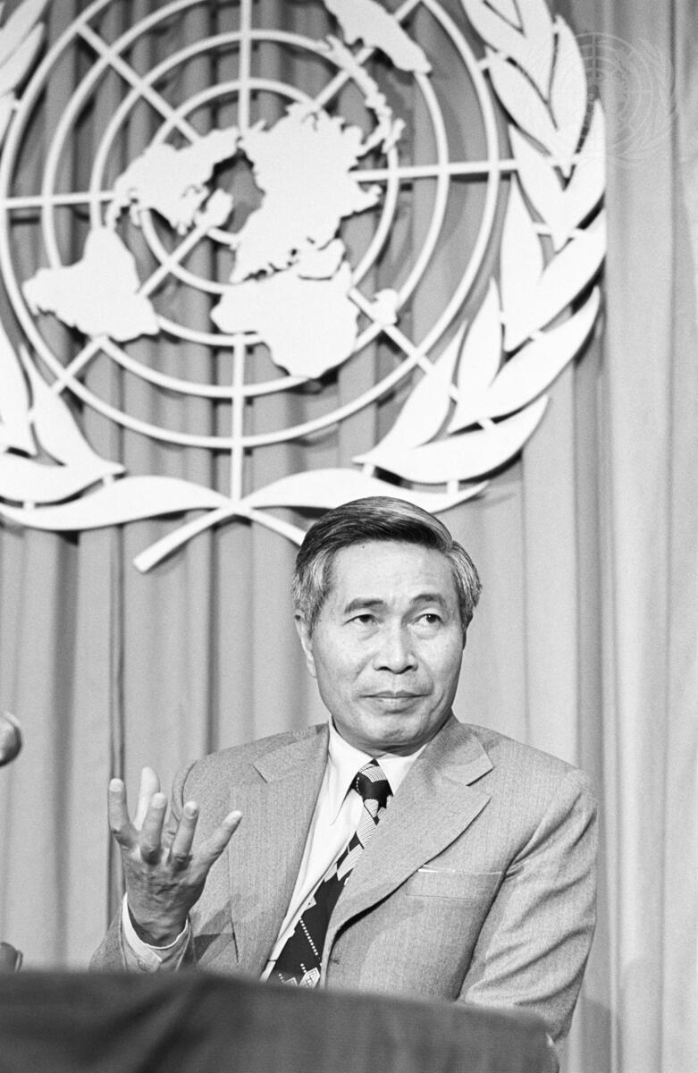 Nguyen Co Thach, Minister for Foreign Affairs of Viet Nam, holds a press briefing at United Nations Headquarters after addressing the 35th regular session of the General Assembly.