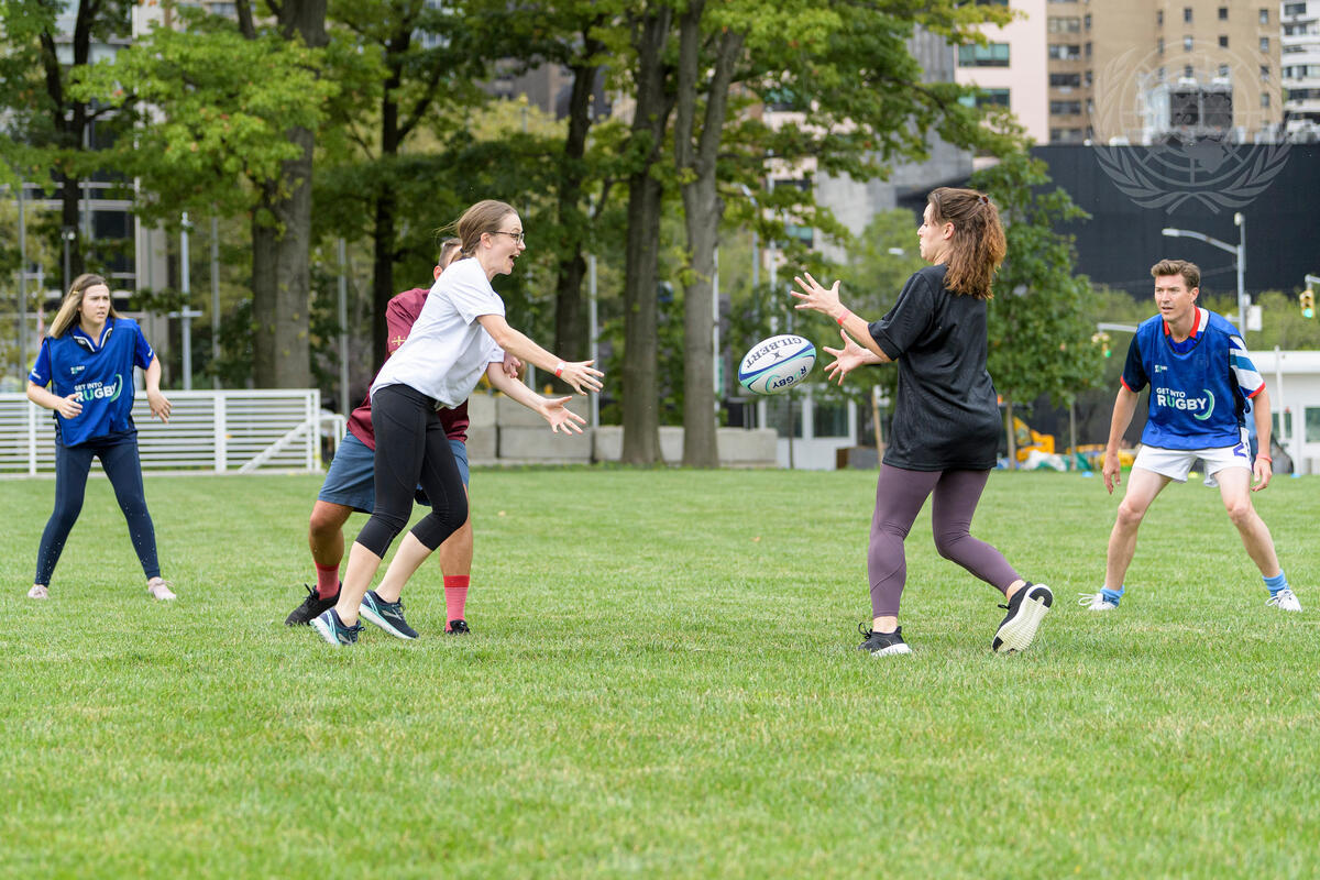 "A special event to celebrate the upcoming Rugby World Cup takes place on the lawn of the UN Headquarters. Ex-Wallabies player David Campese AM and Jarred Hodges, current coach of Rugby 7s and Project Manager of DreamBigTime, demonstrated rugby drills and a Touch 7s game, a fun, non-contact social version of Rugby. The event was organized by the Permanent Missions of Japan, Australia, Samoa, Fiji, Georgia, Ireland, as well as UN Women, together with Rugby Australia.