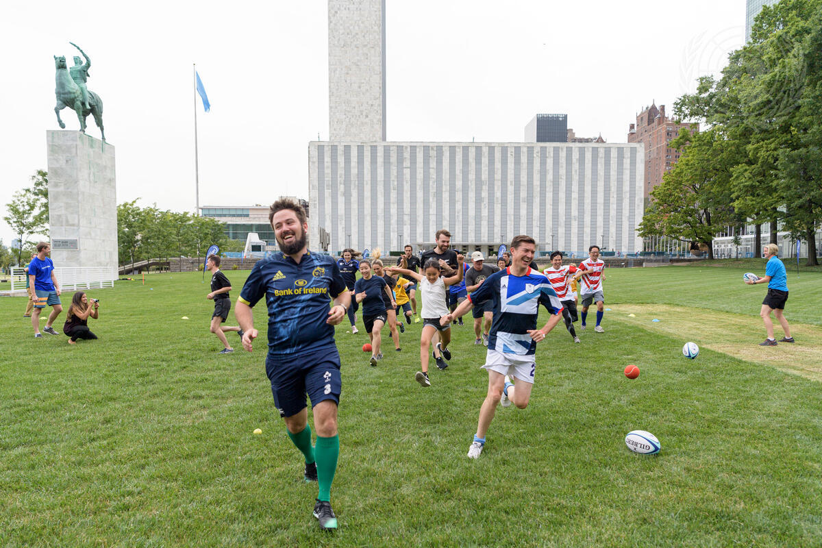 "A special event to celebrate the upcoming Rugby World Cup takes place on the lawn of the UN Headquarters. Ex-Wallabies player David Campese AM and Jarred Hodges, current coach of Rugby 7s and Project Manager of DreamBigTime, demonstrated rugby drills and a Touch 7s game, a fun, non-contact social version of Rugby. The event was organized by the Permanent Missions of Japan, Australia, Samoa, Fiji, Georgia, Ireland, as well as UN Women, together with Rugby Australia.
