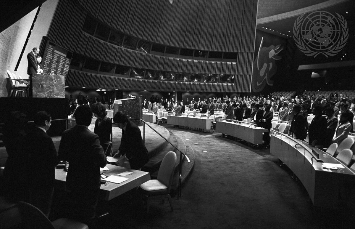 A view of the Assembly as it rose for a minute of silence dedicated to prayer or meditation.