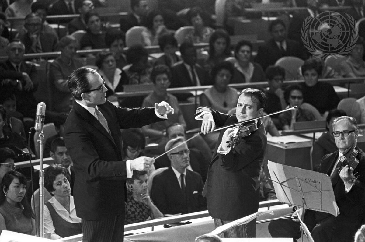 The Vienna Symphony Orchestra gave a concert in the General Assembly Hall today in commemoration of United Nations Day (October 24). Soloists were Henryk Szeryng and Jorge Bolet, and the Rutgers University Choir also took part. A commemorative address was made by Secretary-General U Thant.