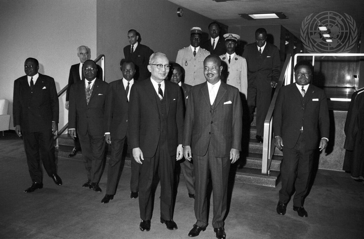 Secretary-General U Thant escorting President Ahmadou Ahidjo to the South Lounge where the luncheon was held.