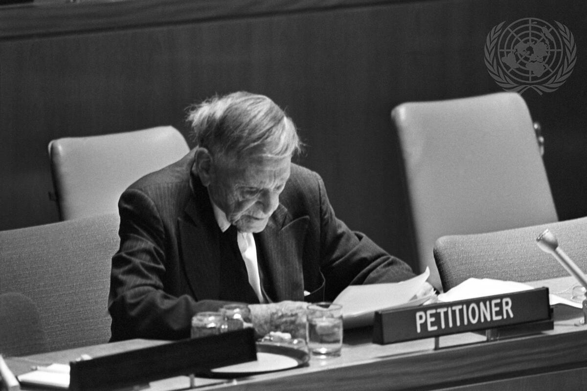 Roger Baldwin, reading a statement on behalf of Michael Scott of the International League for Human Rights