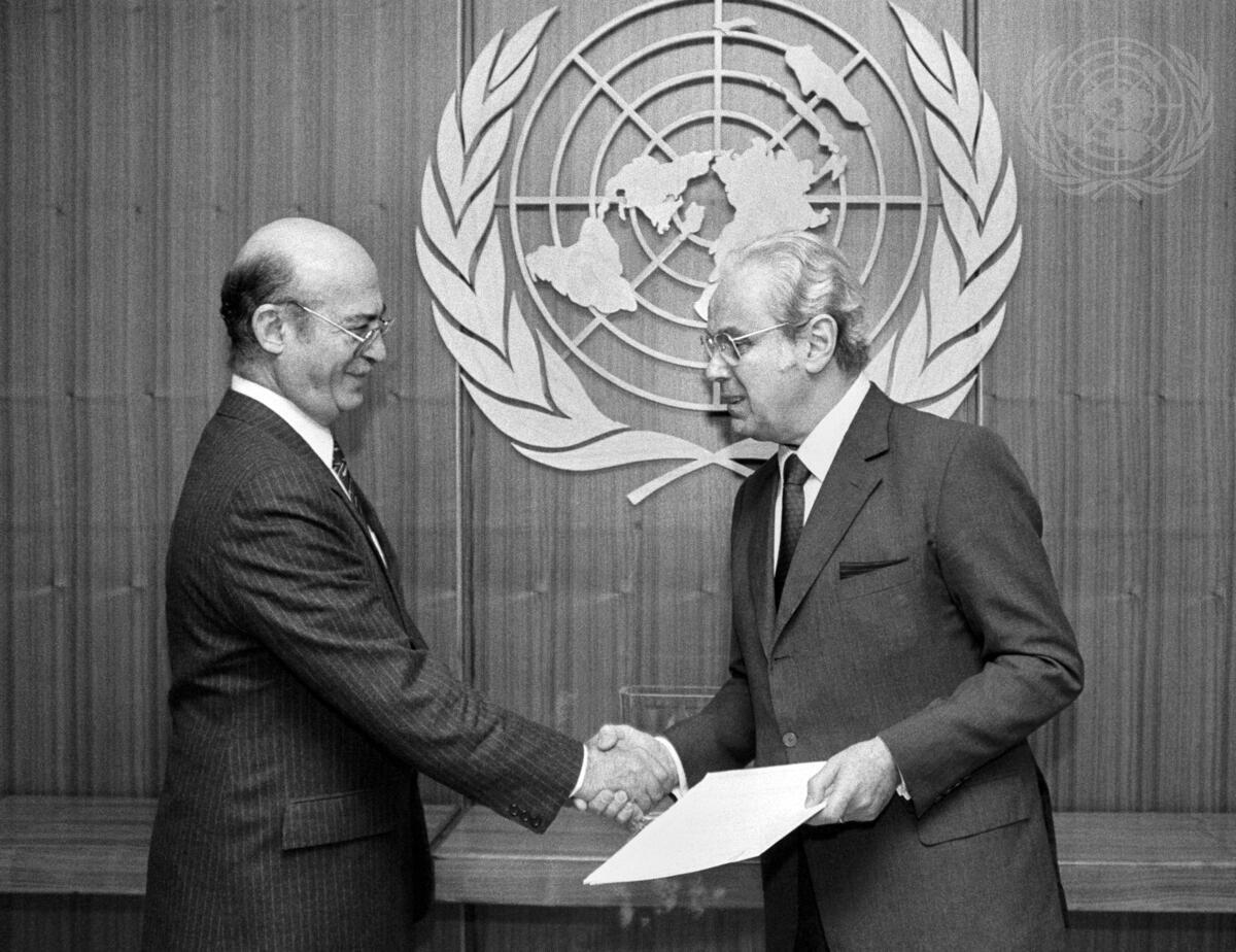 Portrait of Nejib Bouziri, Permanent Representative of Tunisia to the United Nations, who presented his credentials to the Srecretary-General Javier Perez De Cuellar at UN Headquarters.