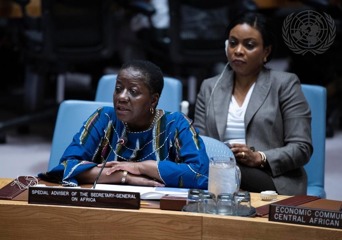 Bience Philomina Gawana, Special Adviser of the Secretary-General on Africa, briefs the Security Council on mobilising the youth towards silencing the guns by 2020, under the topic peace and security in Africa.