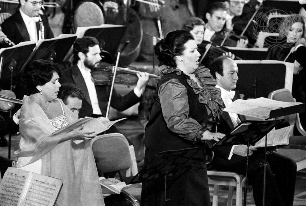 Jesus Lopez-Cobos conducted the National Orchestra and Chorus of Spain in the 1983 United Nations Day concert held in the General Assembly Hall tonight. The programme, which consisted of Spanish composer Manuel de Falla’s “Nights in the Gardens of Spain” and “La Vida Breve”, featured pianist Alicia de Larrocha, soprano Montserrat Caballe, and tenor Jose Carreras. Secretary-General Javier Perez de Cuellar gave the traditional United Nations Day address.