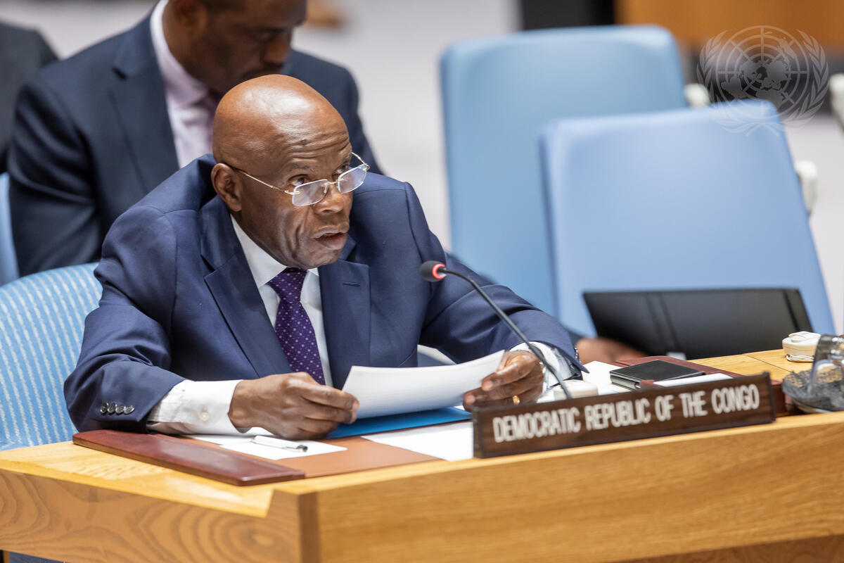 Ignace Gata Mavita Wa Lufuta, Permanent Representative of the Democratic Republic of the Congo to the United Nations, addresses the Security Council meeting on the situation in the Great Lakes region. The Council heard a report of the Secretary-General on the implementation of the Peace, Security and Cooperation Framework for the Democratic Republic of the Congo and the Region.