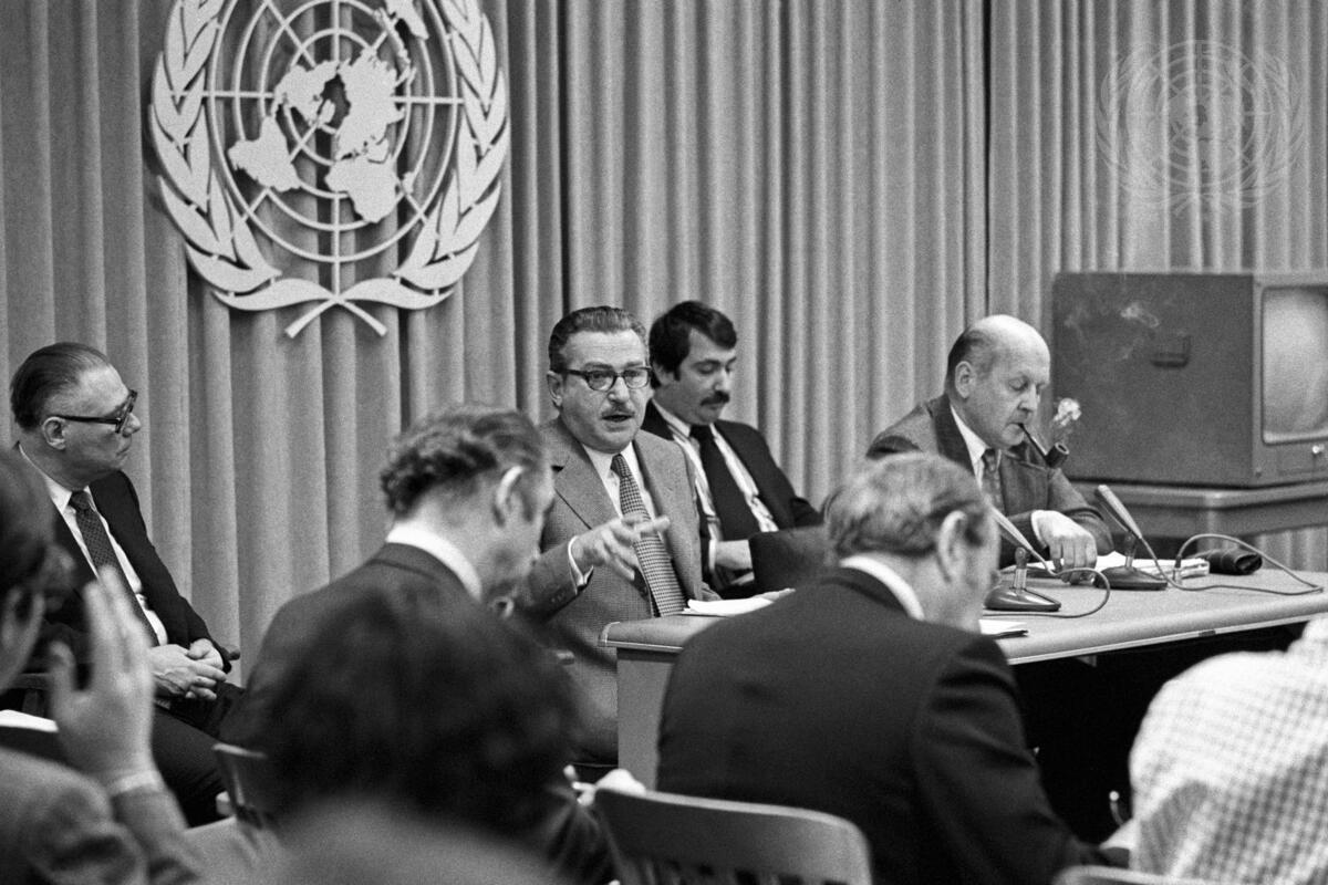 Gabriel Van Laethem, Under-Secretary-General for Economic and Social Affairs, is seen as he met with correspondents at the OPI press briefing today to discuss United Nations participation in the Conference on Economic Co-operation and its Commissions. Mr. Van Laethem is representing the Secretary-General at the sessions of the Conference's four commissions which began meeting last month.