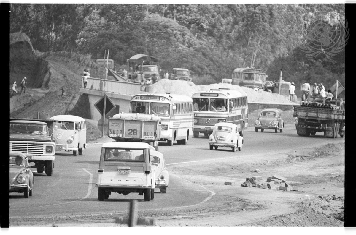 Road traffic being detoured while construction work continues on a bridge on Route 324 near Salvador. Over the last ten years the road traffic and the number of vehicles in Brazil have grown rapidly, and the need to develop and upgrade the road system has increased accordingly. The government is emphasising the need for transport to open up new lands and to move agricultural products and raw materials from the interior to coastal consumption areas and ports for export. With financial help from the International Bank for Reconstruction and Development (IBRD) the Government of Brazil has undertaken several road development projects.