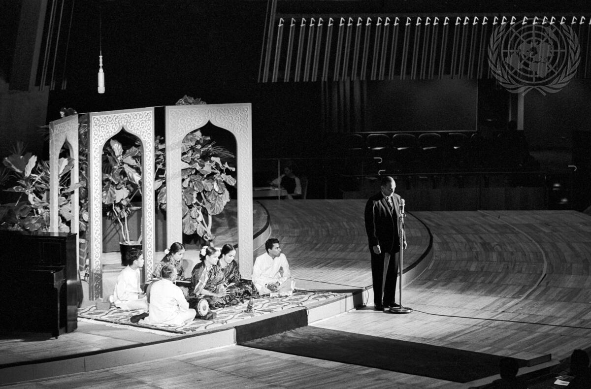 Madame M.S. Subbulakshmi, one of India?s most eminent musicians, gave a recital of Indian songs today in the General Assembly Hall, as part of a 1966 United Nations Day (24 October) celebrations. Accompanying Madame Subbulakshmi during the recital was a group of five other noted musicians.