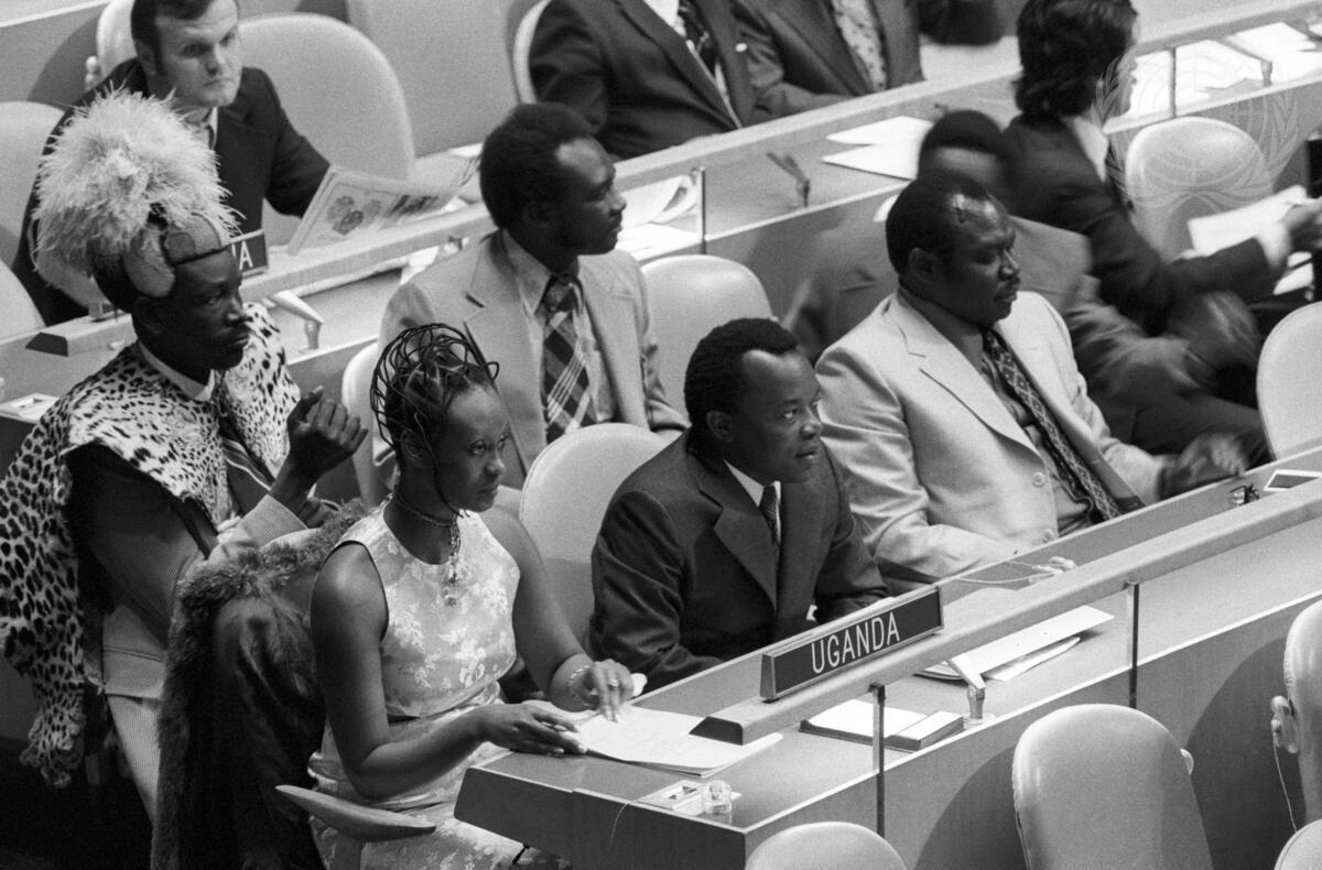 Seen here is the delegation of Uganda headed by Miss Elizabeth Bagaaya (left), Minister for Foreign Affairs. Seated next to her is Ambassador Khalid Younis Kinene, Permanent Representative to the UN.
