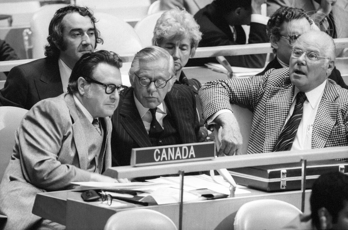 Seen here is the delegation of Canada headed by Allan MacEachen (left), Secretary of State for External Affairs. Seated next to him is Dr. Saul F. Rae, Permanent Representative to the UN.