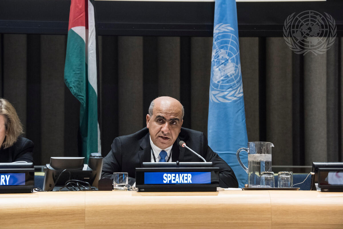 Shaher Awawdeh, Deputy Permanent Observer of the Organization of Islamic Cooperation (OIC) delivers a statement on behalf of Yousef Al Othaimeen, Secretary-General of the OIC, during a special meeting of the Committee on the Exercise of the Inalienable Rights of the Palestinian People, held to mark of the International Day of Solidarity with the Palestinian People (29 November).