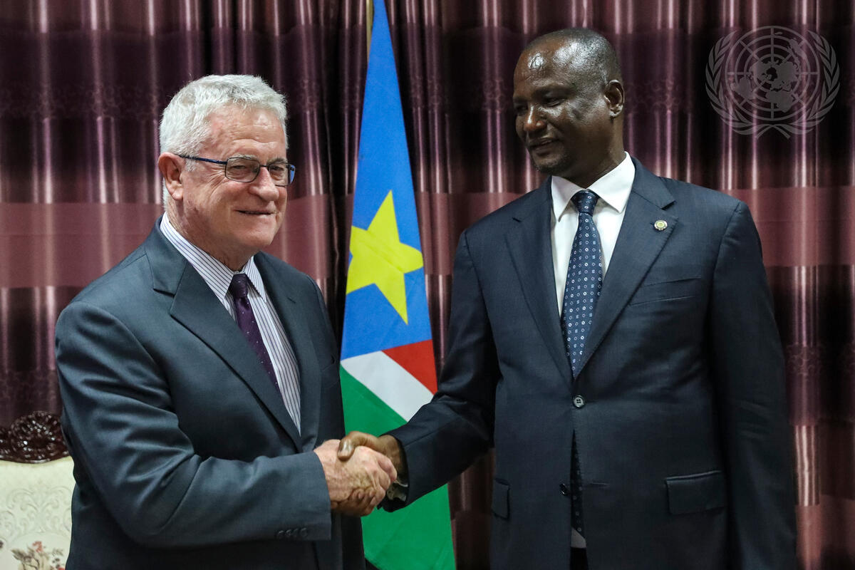 The United Nations Review Team headed by Kevin Kennedy (left) meets Taban Deng Gai, First Vice President of the Republic of South Sudan.
