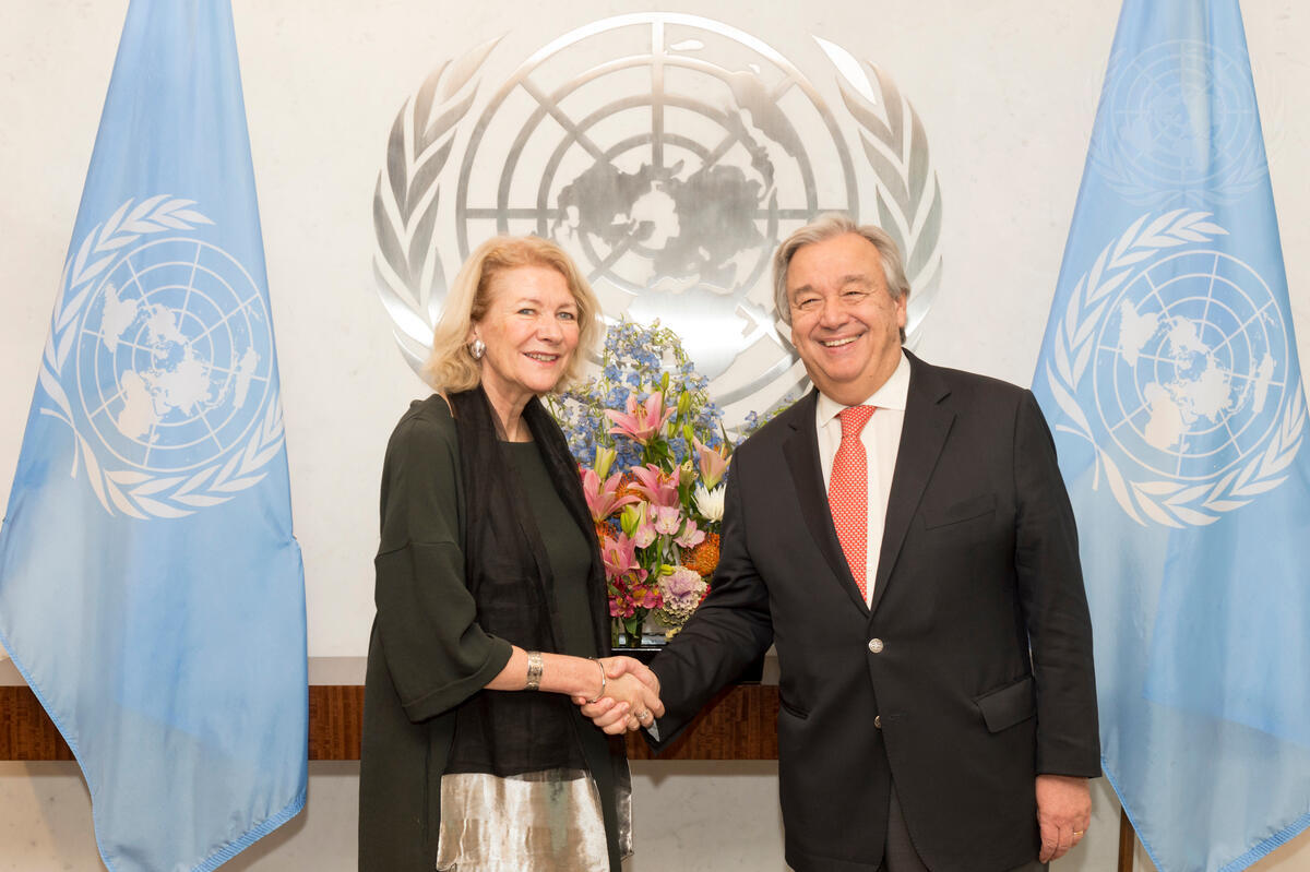 Secretary-General António Guterres (right) swears in Alison Smale as Under-Secretary-General for Global Communications for the United Nations Department of Public Information (DPI).