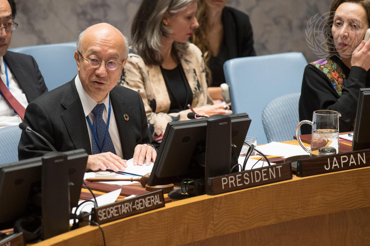Koro Bessho, Permanent Representative of Japan to the UN and President of the Security Council for the month of December, chairs the Council's meeting on the situation in Iraq.
