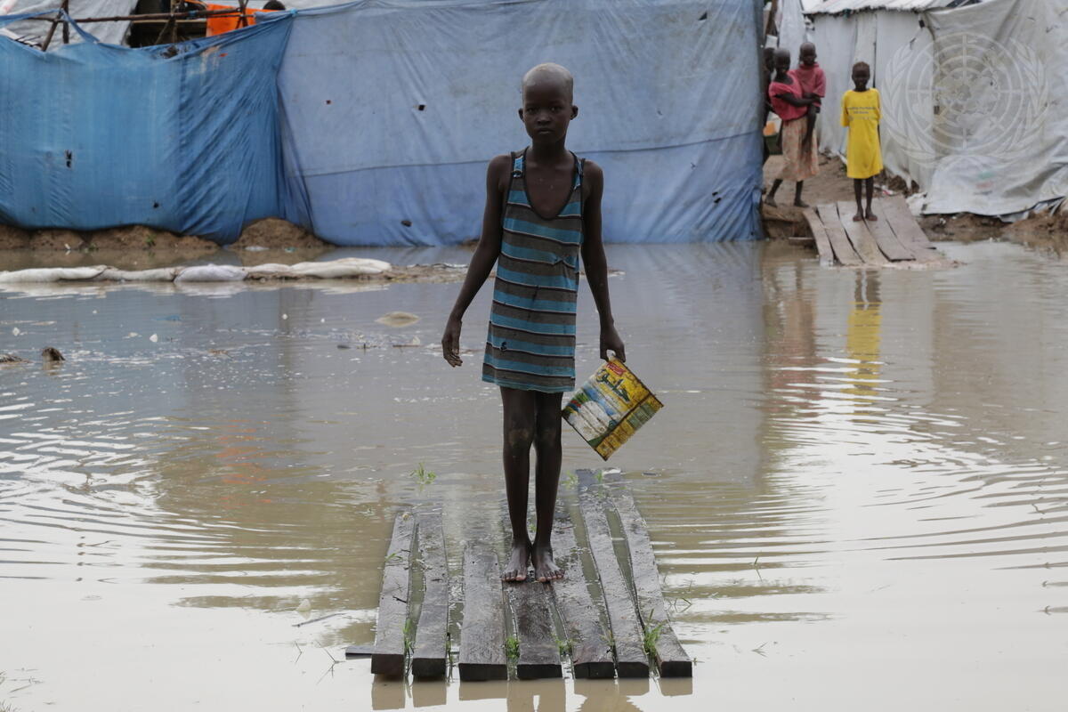 The town of Bor in South Sudan flooded at the start of the rainy season and destroyed the homes of over 2000 Internally Displaced Persons (IDPs) in the Protection of Civilians site. The local community turned to United Nations Mission in the Republic of South Sudan (UNMISS) for assistance. The Head of the Field Office, together with engineers from the Republic of Korea and Bor officials, visited the affected areas and devised a plan to help the population.