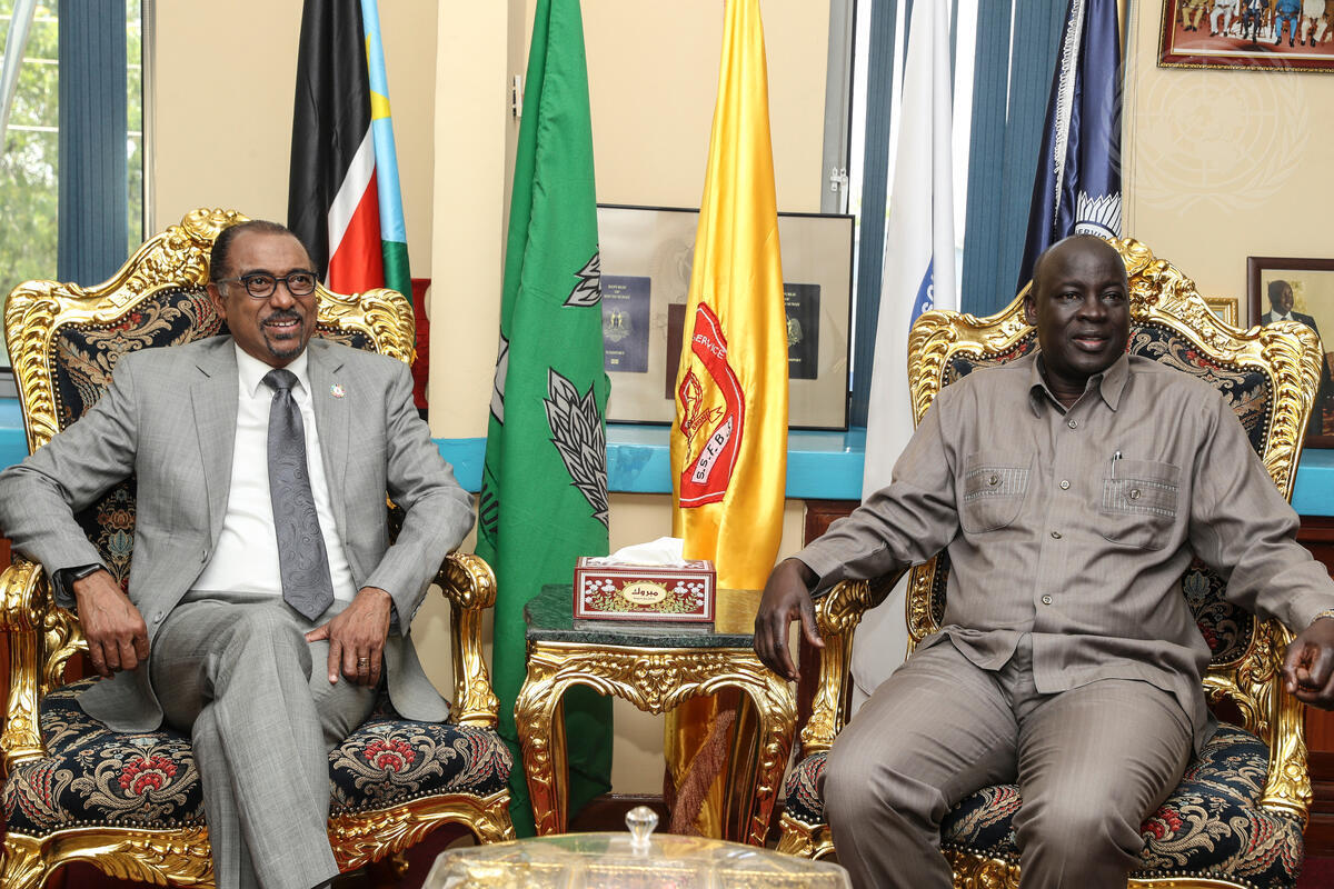 Michel Sidibé (left), Executive Director of the Joint United Nations Programme on HIV and AIDS (UNAIDS) meets with Michael Chienjiek, Minister of Interior of South Sudan.