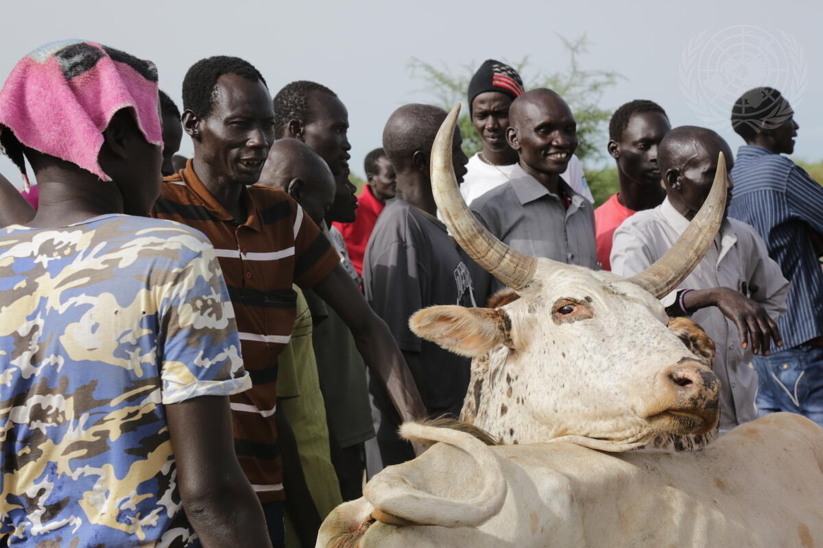 Cattle and locacl residents at the market in Pibor, South Sudan.