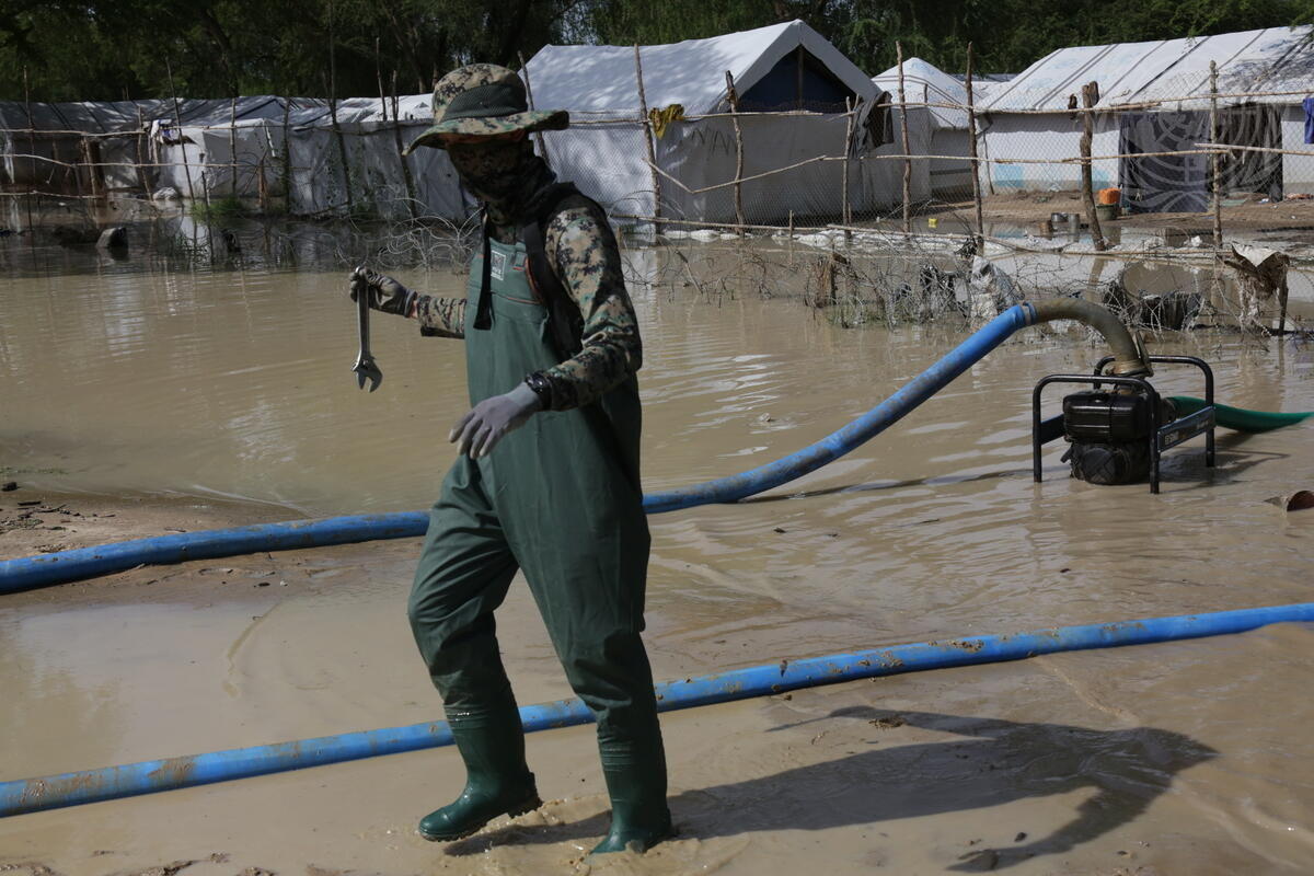 The United Nations Mission in the Republic of South Sudan (UNMISS), with the help of engineers from the Republic of Korea, uses heavy pumps to pump out the water. The Korean Engineers are planning to work on a drainage system so that similar flooding can be avoided in the future.