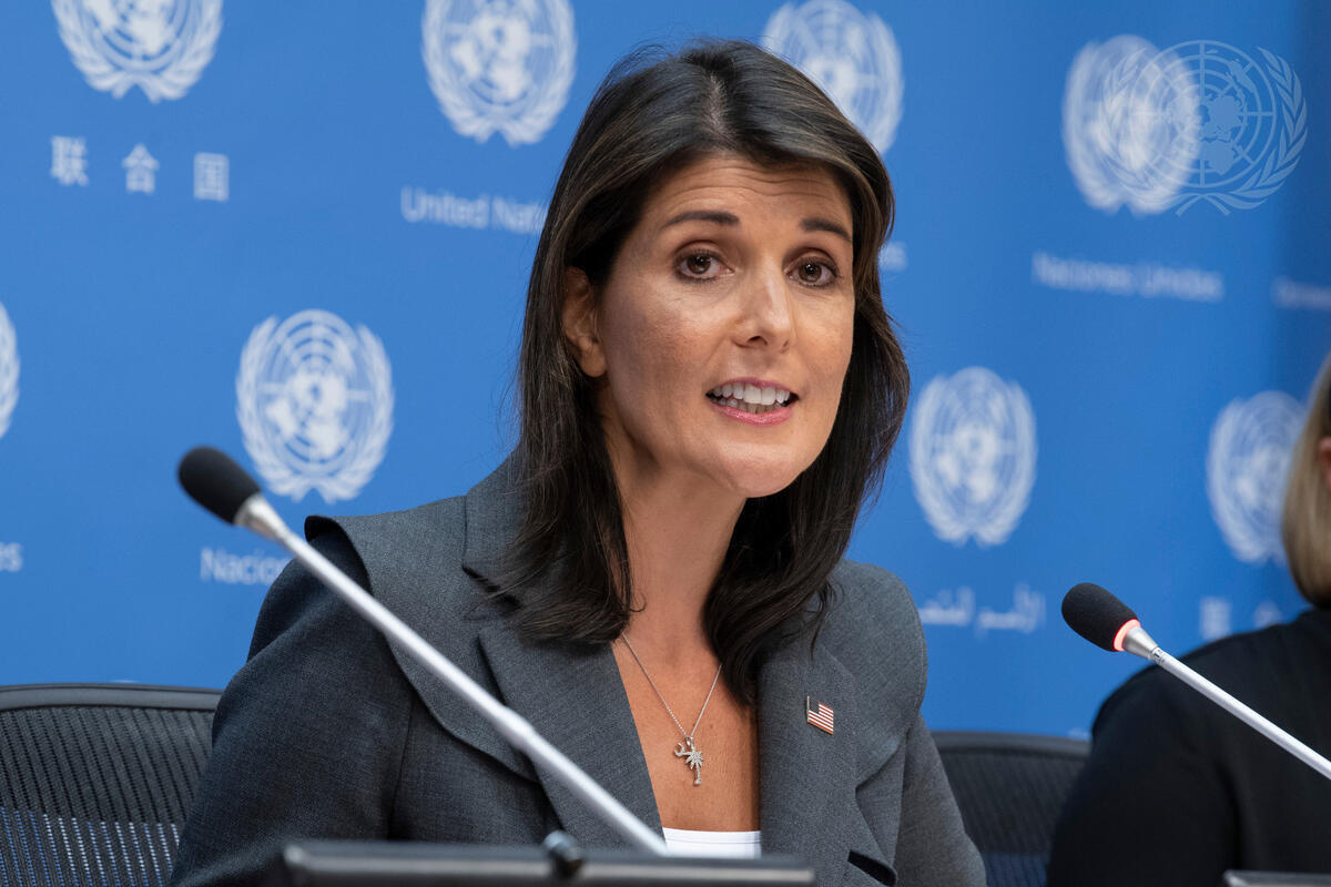 Nikki R. Haley, Permanent Representative of the United States to the UN and President of the Security Council for the month of September, briefs press on the Council's programme of work for the month.