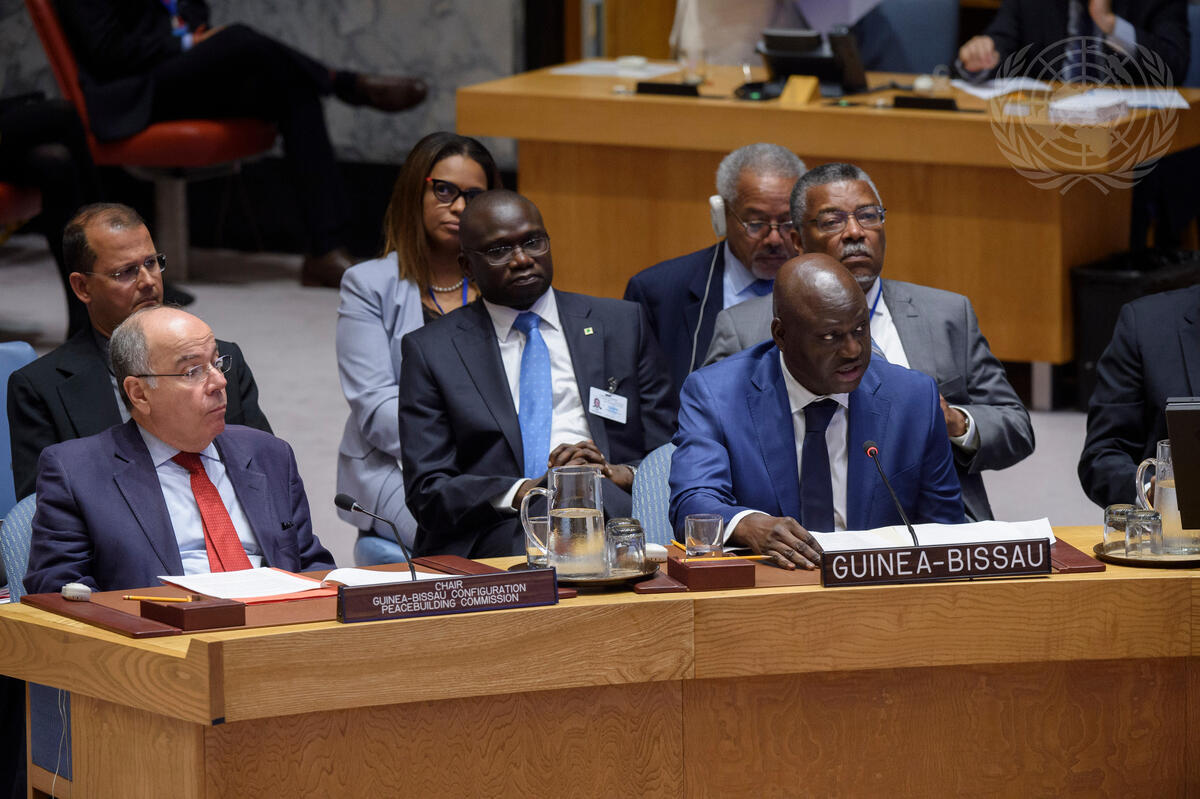 Aristides Gomes (right), Prime Minister of Guinea-Bissau, addresses the Security Council meeting on the situation in his country. To the left is Mauro Vieira, Chair of the Guinea-Bissau Configuration of the Peacebuilding Commission and Permanent Representative of Brazil to the UN.