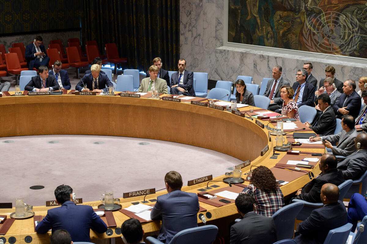Nikki R. Haley, Permanent Representative of the United States to the UN and President of the Security Council for the month of September, chairs the Security Council meeting on the programme of work for the month of September.